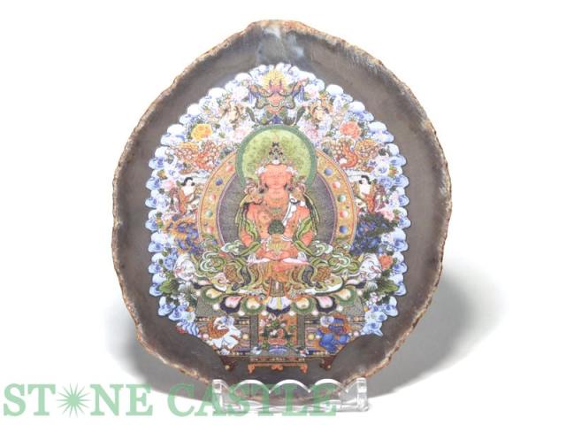 ☆高品質☆【天然石 置き石】メノウプレート (台付) 阿弥陀如来