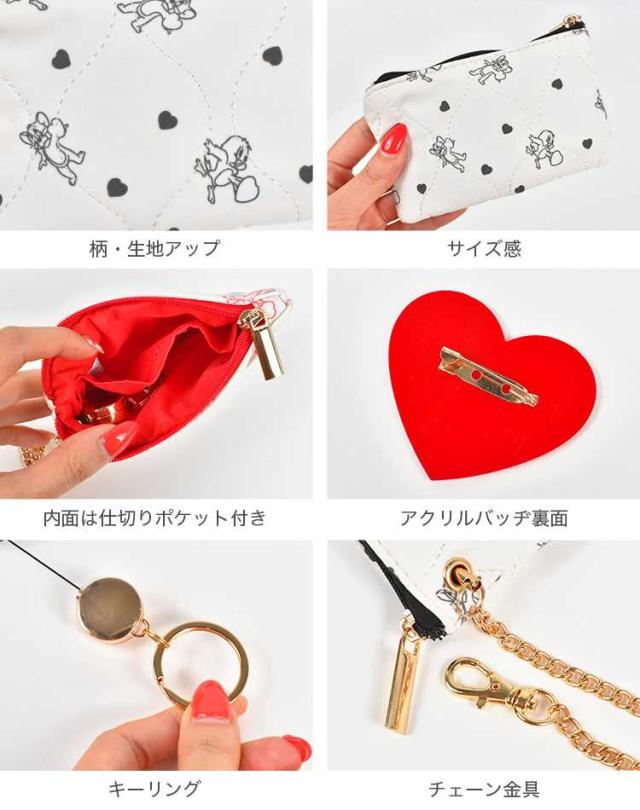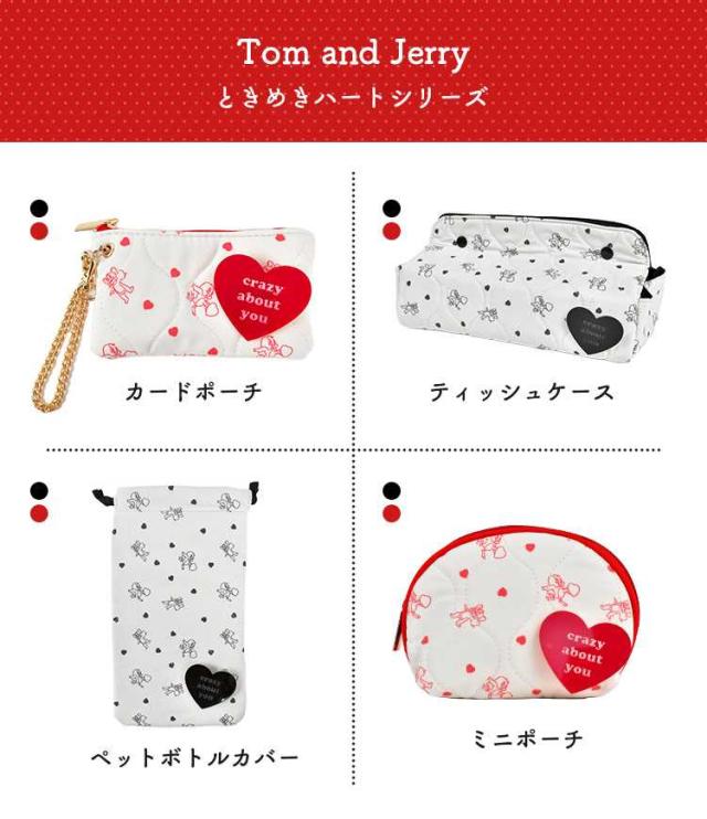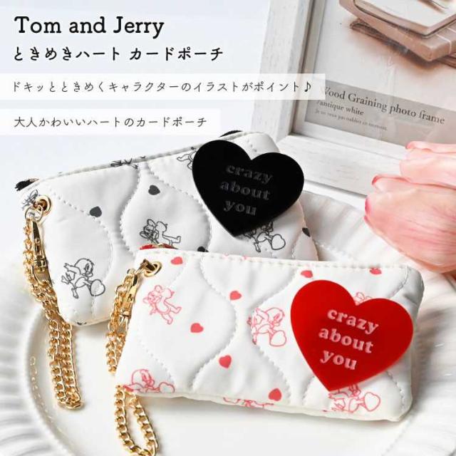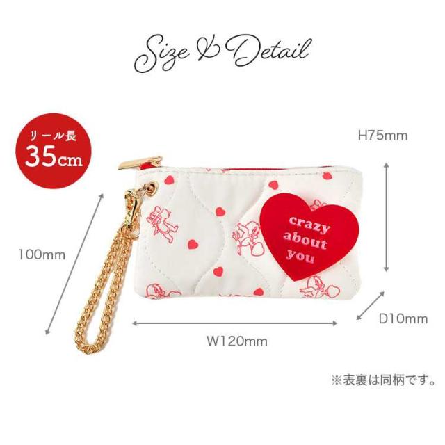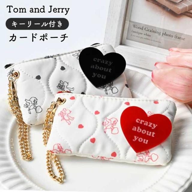 キーケース パスケース リール付き トムとジェリー トムジェリ カードポーチ カードケース 定期入れ 大人 かわいい 可愛い おしゃれ レディース 女の子 女性 キャラクター 小物入れ ミニポーチ 小銭入れ ミニ財布 スリム コンパクト 小さい キルティング 白 ホワイト ハート