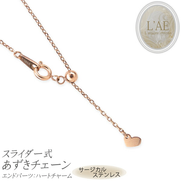 ステンレスチェーン ネックレスチェーン スライド カットあずきチェーン スライダー サージカルステンレス ハート ローズゴールド ピンク 45cm アズキ 小豆 レディース メンズ 金属アレルギー 対応 アジャスターチェーン ギフト 誕生日 記念日
