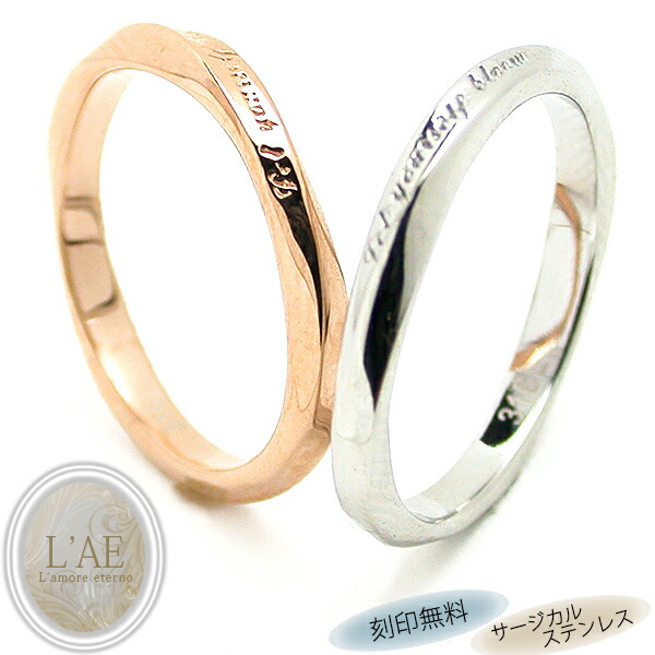 ペアリング 2本セット ステンレス 金属アレルギー メッセージペアリング 2本セット ステンレス 金属アレルギー 刻印無料 レーザー刻印 サージカルステンレスアクセサリー ピンク ローズゴールド シルバーカラー ペア リング メンズ レディース 名入れ 結婚指輪 カップル