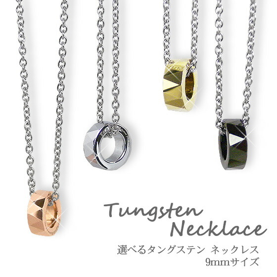 ネックレス リング型 シンプル タングステン ピスタチオグリーン グリーンゴールド ピンク ローズゴールド ブラック 黒 メンズ レディース 誕生日 記念日 ダイヤモンドカット 金属アレルギー対応 ペンダント ステンレス チェーン付き