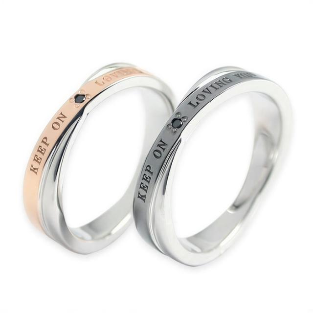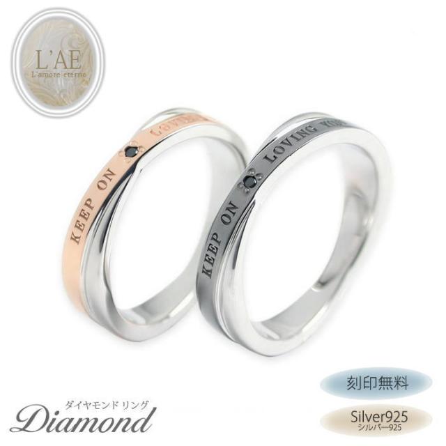 ペアリング 指輪 アクセサリー 刻印無料 名入れ ブラックダイヤモンド シルバー925 ピンクゴールド ブラック 誕生日 記念日 メンズ レディース 結婚指輪 カップル 2個セット