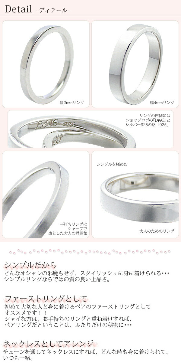 ペアリング マリッジリング 刻印無料 名前入り リング シンプル 平打ち シルバーリング 幅2mm 幅4mm シルバー925 ピンキーリング 偶数 ペア 指輪 メンズ レディース 名入れ 彼女 女性 妻 喜ばれる 人気 ランキング シルバー 結婚指輪 カップル 2個セット ク