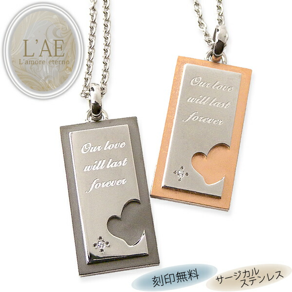 ペアネックレス 刻印 名前入り ステンレス メッセージペアネックレス プレート ペア ネックレス ステンレスペアネックレス サージカルステンレス ブラック ピンク ローズゴールド ハート ペアペンダント 記念日 名入れ プレゼント メンズ レディース 大人 シンプル