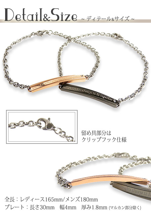 ペアブレスレット レーザー刻印無料 名入れ ステンレスペアブレスレット サージカルステンレス ダイヤモンド IDプレート シルバー ピンク ローズゴールド ペアブレス メッセージペアブレスレット ペアバングル メンズ レディース プレゼント 誕生日 記念日