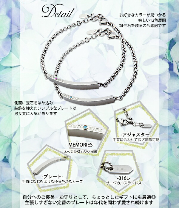 ペアブレスレット 2本セット ステンレス レーザー刻印無料 誕生石 ステンレスペアブレスレット サージカルステンレス ステン316L IDプレート バースストーン ペアブレス メッセージペアブレスレット メンズ レディース