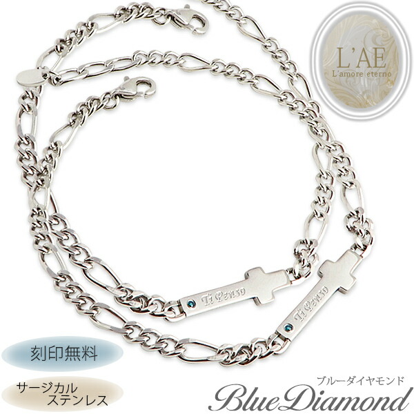 ペアブレスレット 2本セット ステンレス ステンレス 刻印無料 ブルーダイヤモンド クロス プレート 十字架 サージカルステンレス 金属アレルギー対応 ペア ブレスレット サムシングブルー 結婚 婚約 名入れ メンズ レディース バングル