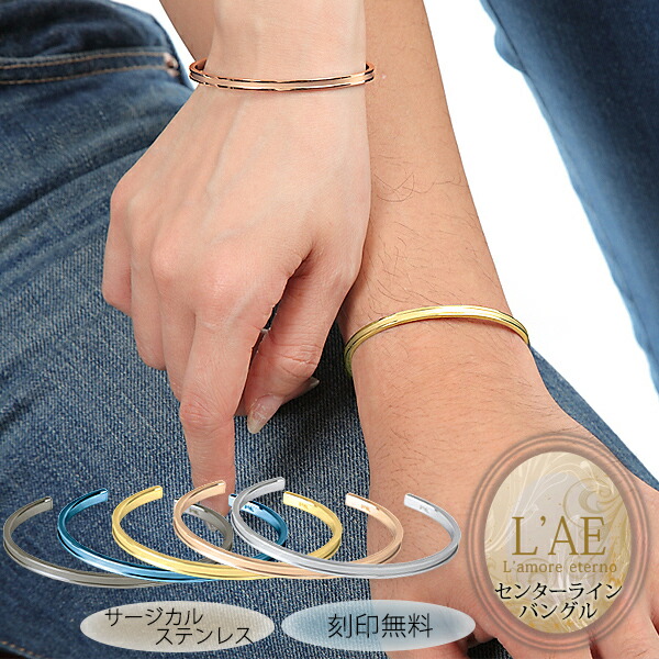 ペアバングル バングル 刻印 センターライン S M L オープンバングル C型 腕 時計 重ねづけ ピンク ブラック シルバー ブルー イエロー ペア メンズ レディース プレゼント シンプル ランキング 大人 ラッピング 送料無料 ホワイトデー お返し