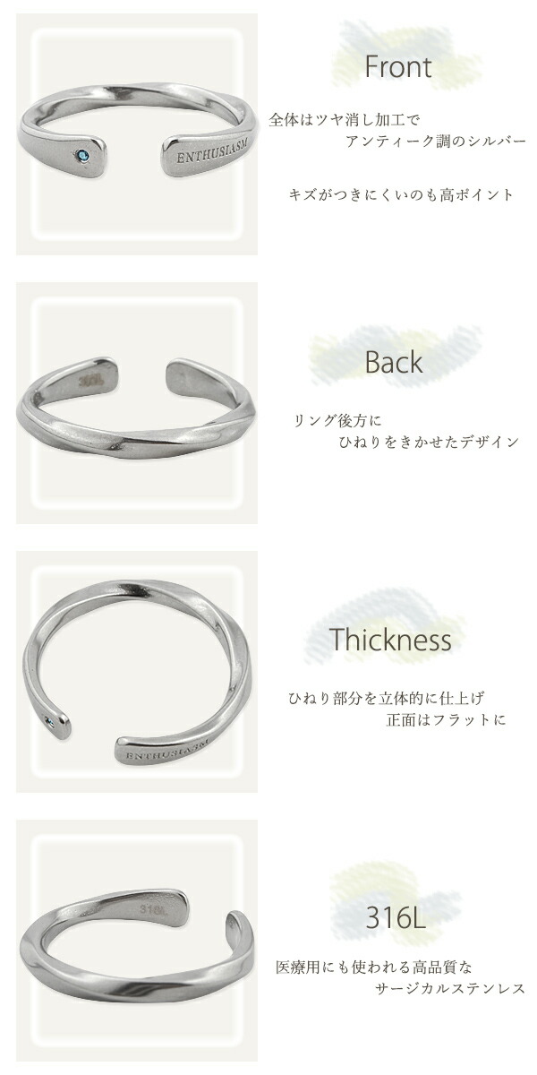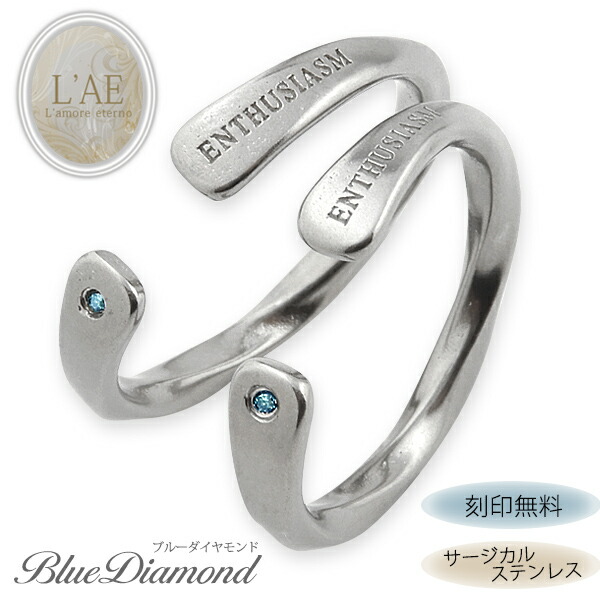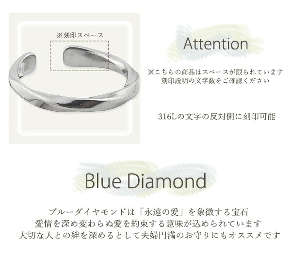 ペアリング 2本セット ステンレス 金属アレルギー リング 指輪 刻印 ブルーダイヤモンド ダイヤモンド 青 アンティーク調 マッド ひねり ツイスト サムシングブルー ペア 名入れ メンズ レディース 結婚指輪 カップル ラッピング 送料無料