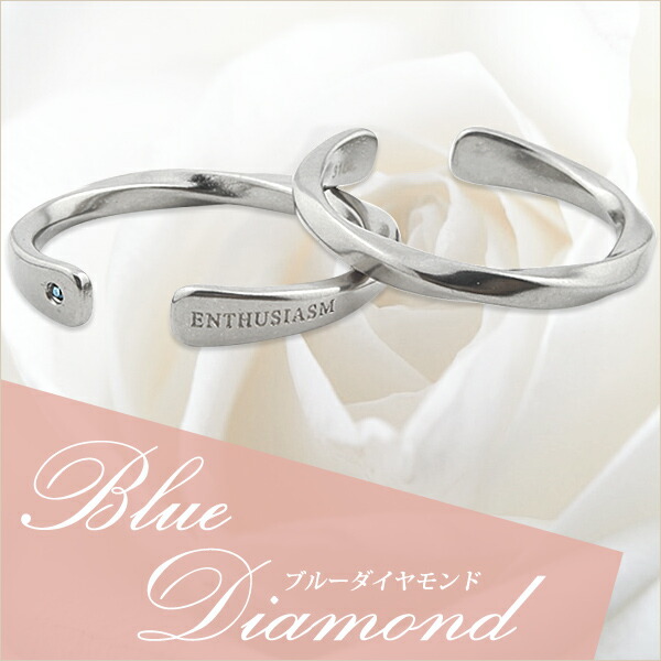 ペアリング リング 指輪 刻印 ブルーダイヤモンド ダイヤモンド 青 アンティーク調 マッド ひねり ツイスト 金属アレルギー対応 サムシングブルー ペア 名入れ メンズ レディース 結婚指輪 カップル 2個セット ラッピング 送料無料 ホワイトデー お返し