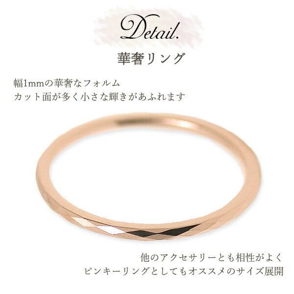 リング ピンキーリング タングステン 極細リング 金属アレルギー対応 ダイヤモンドカット 菱形 レディース リング ピンキー 指輪 ピンク ゴールド ローズゴールド ステンレス サージカルステンレス 3号から 細い 華奢