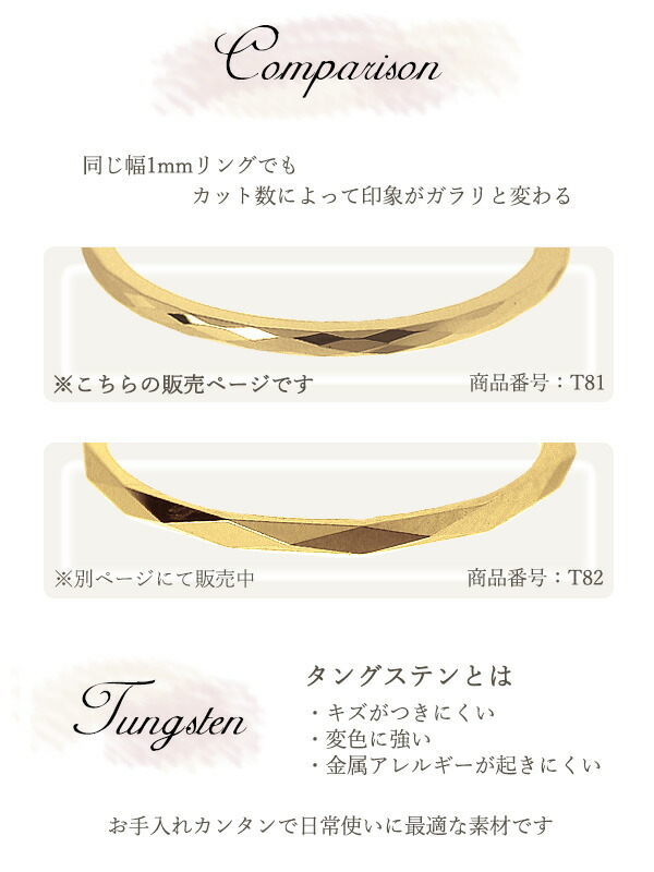 リング ピンキーリング タングステン 極細リング 金属アレルギー対応 ダイヤモンドカット 菱形 レディース リング シンプル ピンキー 指輪 イエロー ゴールド ステンレス サージカルステンレス 3号から 華奢 ユニセックス ホワイトデー お返し