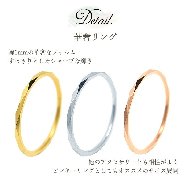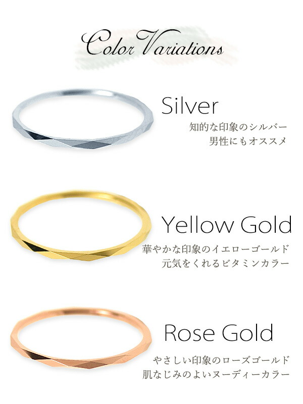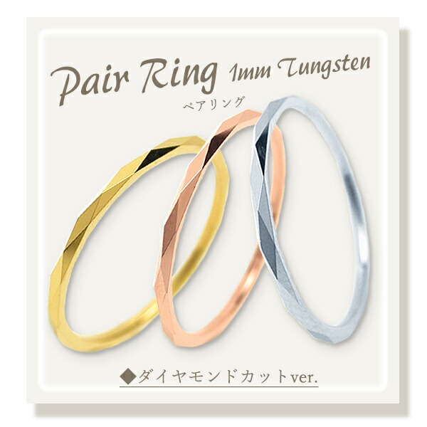 ペアリング タングステン 極細リング 金属アレルギー対応 ダイヤモンドカット 菱形 ピンキーリング メンズ レディース リング ピンキー 指輪 ピンク ローズゴールド イエローゴールド シルバー ステンレス サージカルステンレス 3号から 結婚指輪 カップル 2個セット