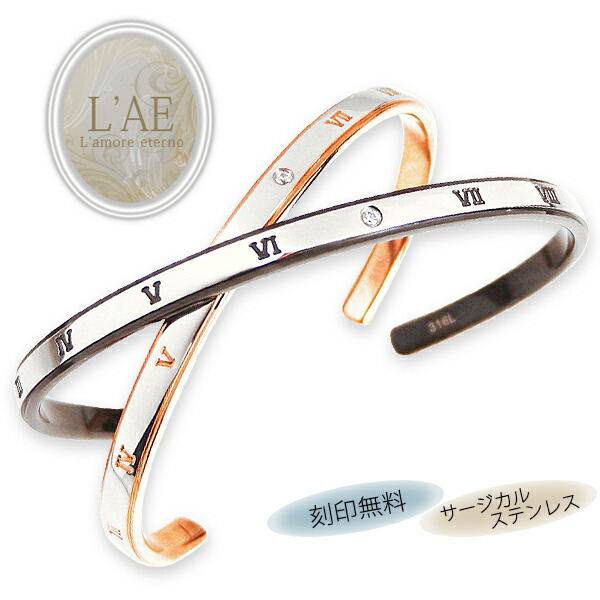 ペアバングル 2本セット ステンレス バングル 刻印 名入れ オープンバングル C型 アトラス ローマ数字 ピンク ブラック メンズ レディース シンプル ランキング 大人 ラッピング 送料無料