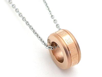 ネックレス ステンレス サージカルステンレスアクセサリー ステン316L リング ローマ数字 アトラス ピンク ローズゴールド メンズ レディース ギフト 記念日 ユニセックス