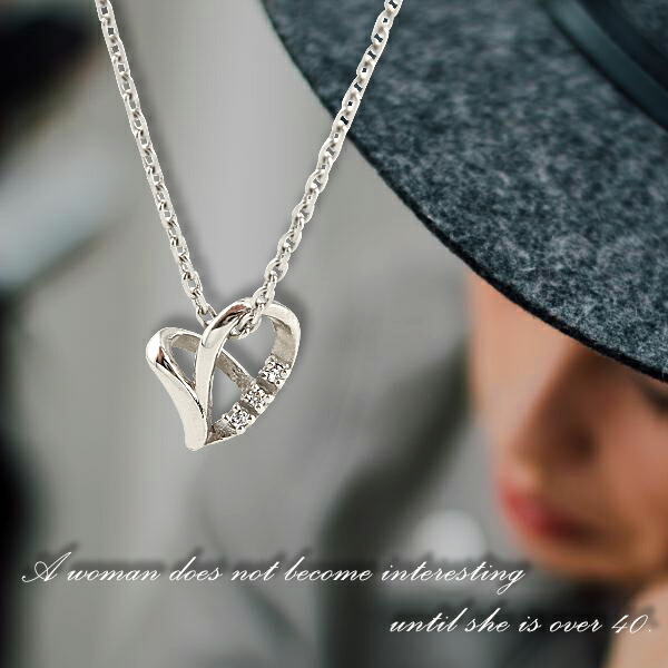 ネックレス レディースネックレス オープンハート 3粒ホワイトジルコニア ハート シルバー 金属アレルギー ギフト ペンダント 誕生日 記念日 スティック シンプル 大人 送料無料