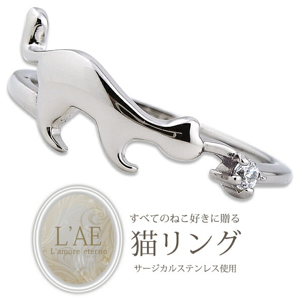 リング 刻印無料 レーザー刻印 気ままな猫 ステンレスリング サージカルステンレス 金属アレルギー対応 猫 ねこ ネコ cat ジルコニア シルバー 誕生日 記念日 メンズ レディース アクセサリー 名入れ ランキング シンプル 大人
