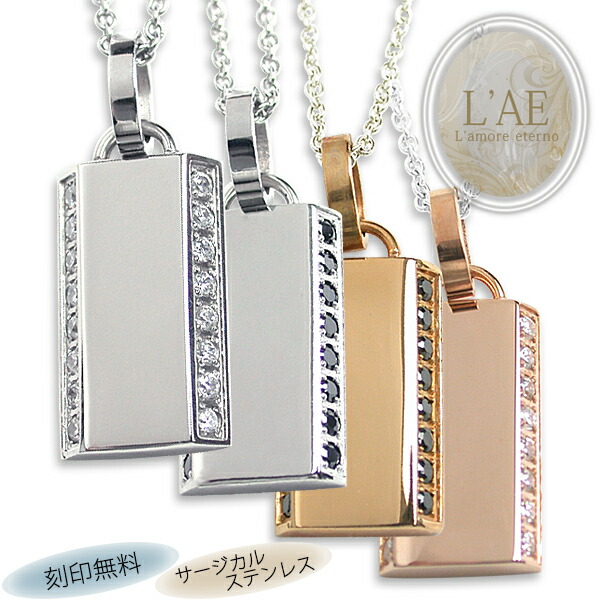 ペアネックレス ステンレス 2本セット 金属アレルギー ネックレス アクセサリー 刻印無料 名入れ ギフト ジルコニア プレート ペアペンダント 誕生日 記念日 メンズ レディース 大人 シンプル ラッピング 送料無料