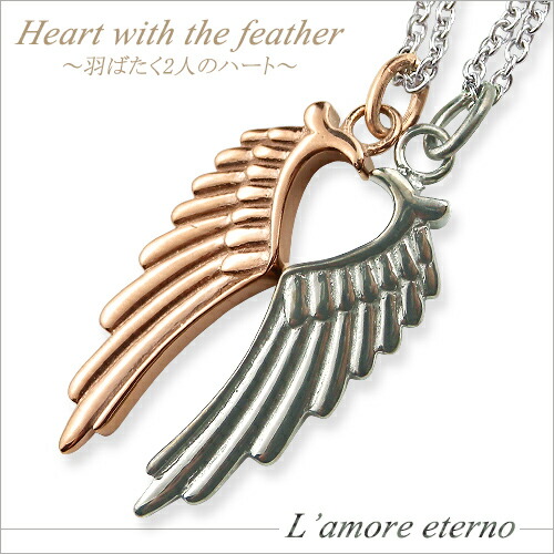 ペアネックレス ネックレス 刻印 名入れ 合わせ 合体 ハート フェザー ペア ピンク ブラック ペアペンダント ギフト アクセサリー ユニセックス メンズ レディース 大人 シンプル プレゼント 送料無料 ラッピング ホワイトデー お返し