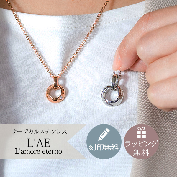 ペアネックレス ステンレス 2本セット 金属アレルギー ネックレス 刻印無料ひねり ツイスト リング型 ジルコニア 名入れ ギフト ピンク シルバー ペアペンダント 誕生日 記念日 大人 シンプル 送料無料 ラッピング