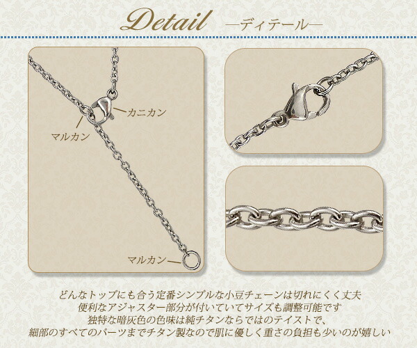 | 商品名 | あずきチェーン 幅2mm チタン チタン製 チェーン 軽量 首や肩への負担が少ない メンズ レディース ネックレスチェーン |