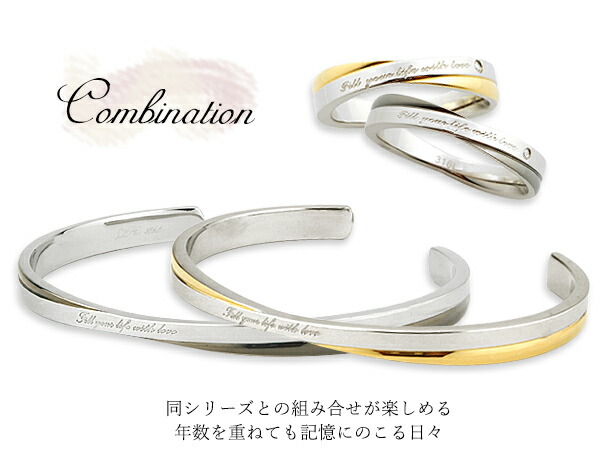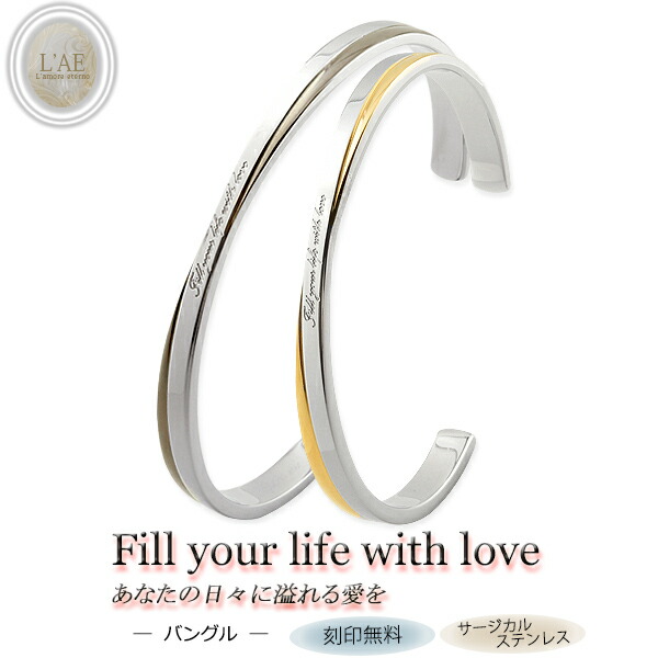 ペアバングル バングル 刻印 イエロー ゴールド ブラック インフィニティ クロス C型 金属アレルギー メッセージ ペア メンズ レディース アクセサリー プレゼント ラッピング 送料無料 ホワイトデー お返し