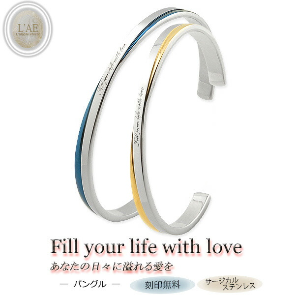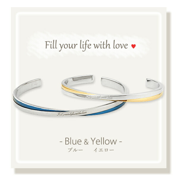 ペアバングル バングル 刻印 イエロー ゴールド ブルー インフィニティ C型 金属アレルギー クロス メッセージ ペア メンズ レディース アクセサリー ラッピング 送料無料