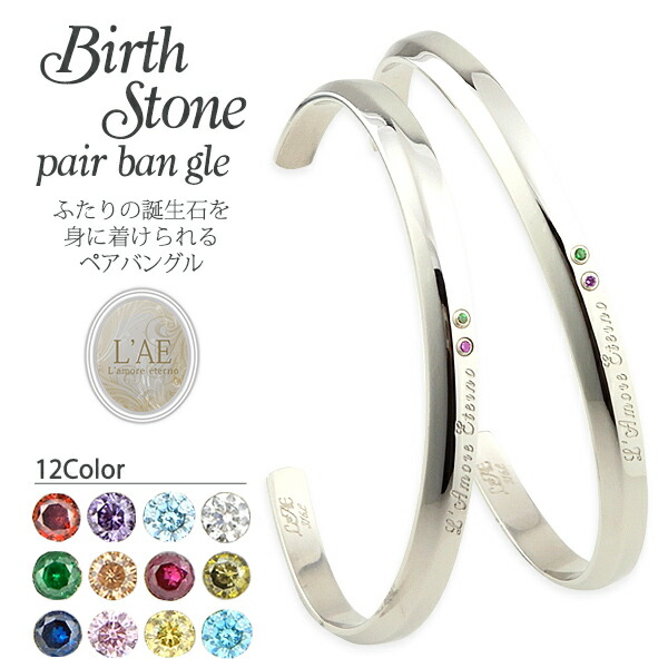 ペアバングル 刻印 誕生石 カップル バースストーン オープンバングル C型 金属アレルギー ジルコニア メンズ レディース バースデー ラッピング 送料無料