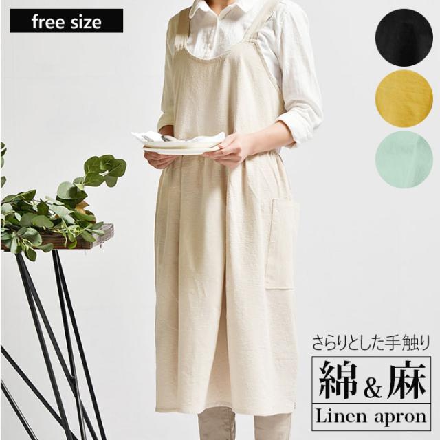 エプロン おしゃれ 通販 ナチュラル リネン 大人 シンプル 安く て かわいい 長め カフェ 保育士 北欧風 ワンピース レディース シンプル