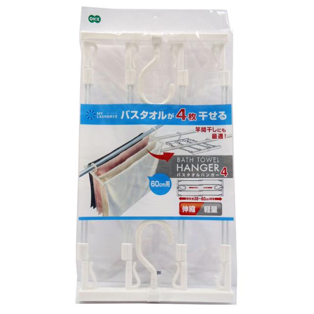 60cm幅のバスタオルが4枚干せるハンガー。