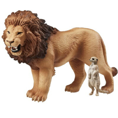 AS-01ライオンが完全リニューアル。造形の進化だけでなく、首が大きく動くようになり、、今までできなかったライオンならではの迫力あるポージングを楽しめるようになりました。ライオンは、首が動き、口が開きます。一緒に遊べるミーアキャット付き。
