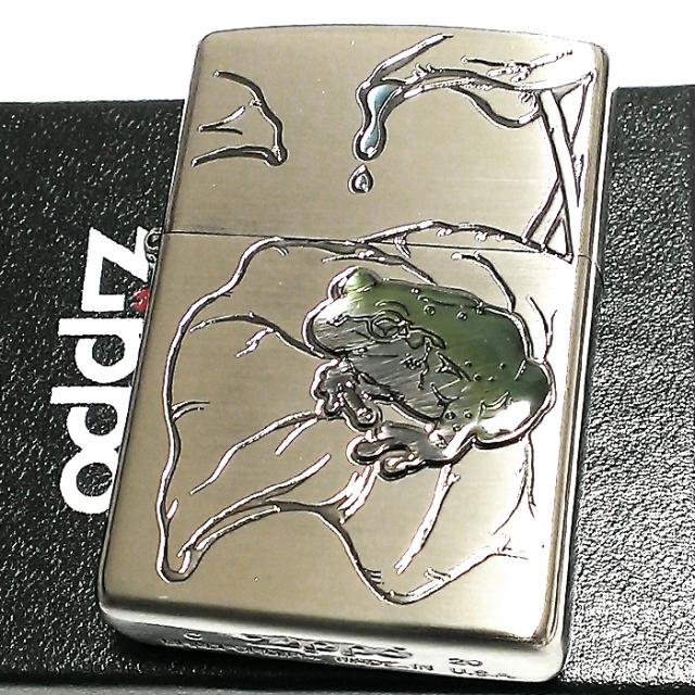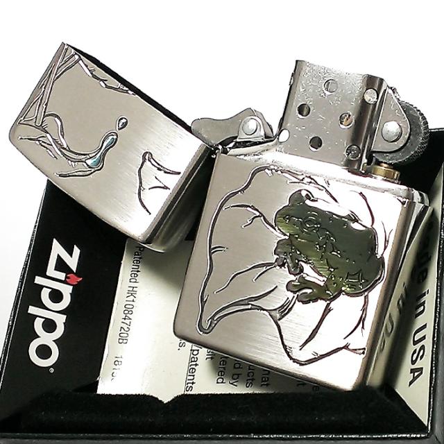 ZIPPO 蛙 ジッポ ライター アンティークシルバー 古美仕上げ エポキシ樹脂加工 カエル 縁起物 メンズ プレゼント ギフト