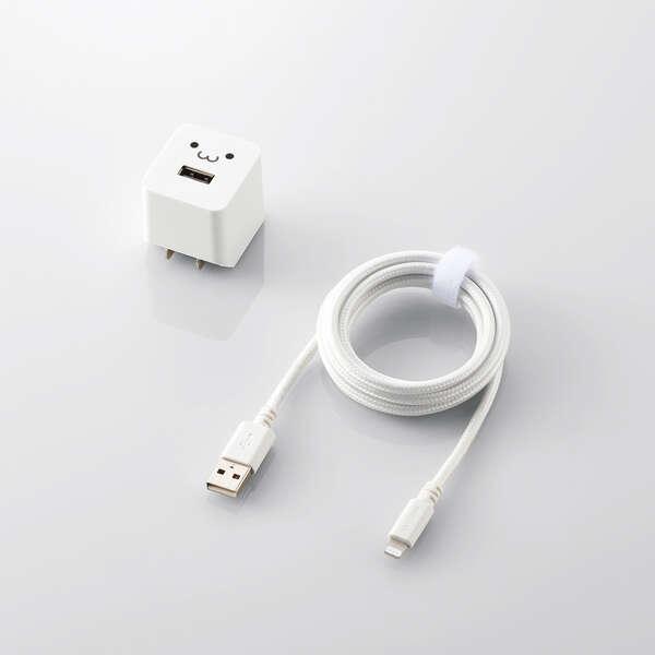 即納 エレコム LightningAC充電器/2.4A出力/ケーブル同梱/1.5m/高耐久ケーブル/ホワイトフェイス