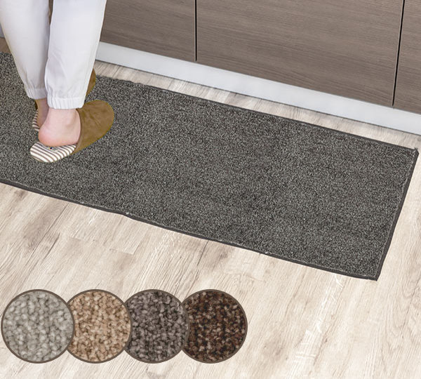 L字型や広めのキッチンなどでもぴったりサイズで作れる、オーダーキッチンマットです。選べるカラーは4種類。どんな床材にも合わせやすい色味なので、ベッドサイドや玄関、廊下などにもお使いいただけます。