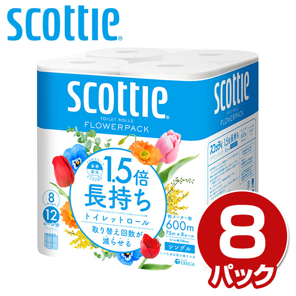 | 日本製紙クレシア スコッティ トイレットペーパー フラワーパック 1.5倍長持ち 8ロール シングル 8ロール×8パック (くつろぎの花の香りつき) |
