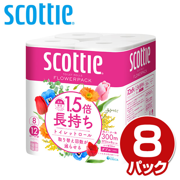スコッティ トイレットペーパー フラワーパック 1.5倍長持ち 8ロール ダブル 8ロール×8パック(くつろぎの花の香りつき) トイレ トイレ用品 トイレ紙 ペーパー ティッシュ トイレティッシュ トイレット 日本製紙クレシア 【送料無料】