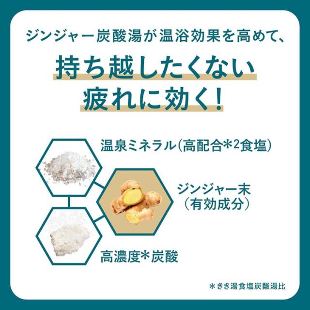 ●ジンジャー炭酸湯・・・高濃度炭酸ガス*2、温泉ミネラル、ジンジャー末(有効成分)