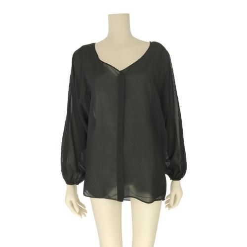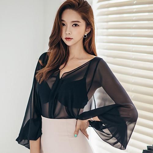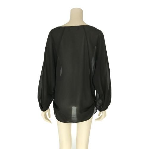 【グラシア】 トップス セクシー レディース カット チラリ デコルテ 胸元 大人 透け感 魅せる ベルスリーブ ブラック S M L XL