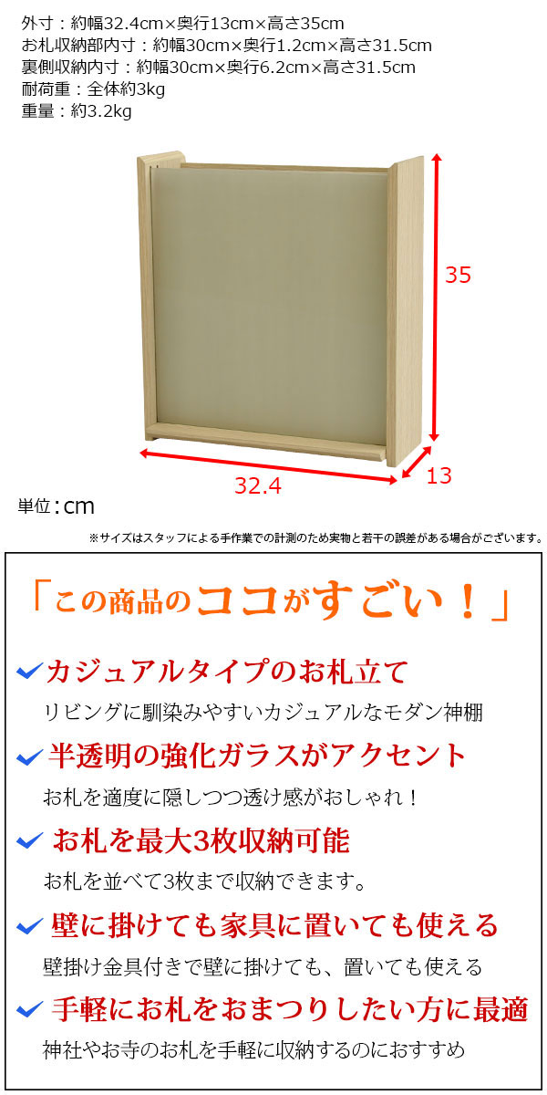 幅約32cm/奥行約13cm/高さ約35cm/モダン神棚/壁掛け