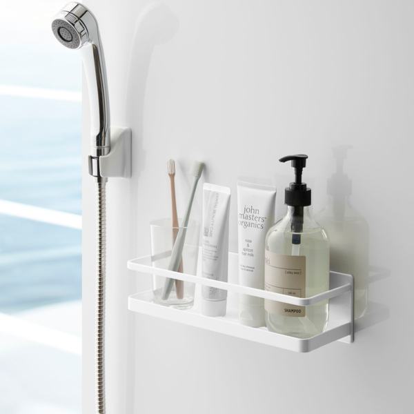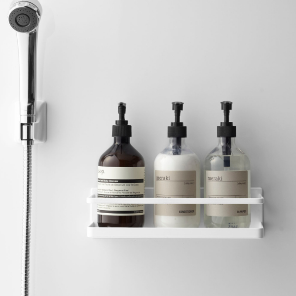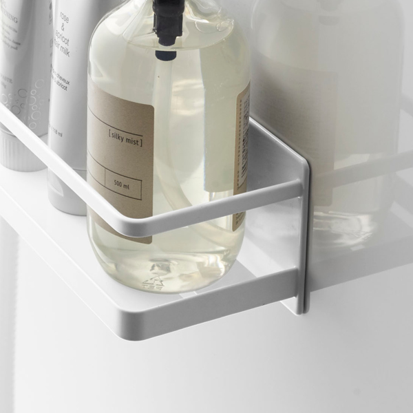 磁石の付く壁面の好きな場所に簡単に取り付けできるラックです。バスグッズはもちろん、歯ブラシにタンブラーなどのケア用品までたっぷり収納できます。シンプルですっきりとしたデザインは、まるで備え付けのようにバスルームに馴染みます。