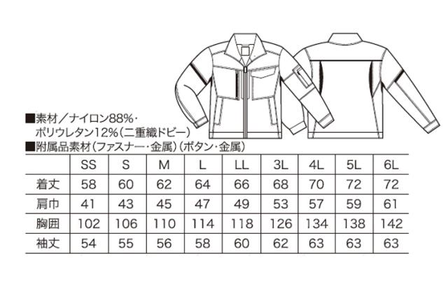 作業服 クロダルマ KURODARUMA 春夏 長袖ジャンパー 256741 大きいサイズ5L・6L