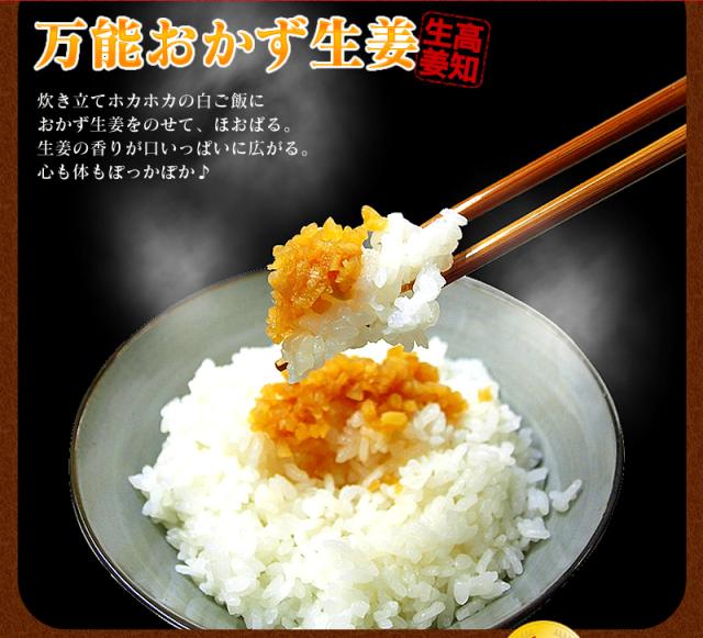 「万能おかずしょうが」は日本全国有数のしょうが生産地として名高い高知県産の生姜をより美味しく食べやすくしました。そのままでもおいしい。ごはんにかけてもおいしい。いろんなお料理に合わせてご使用ください!
