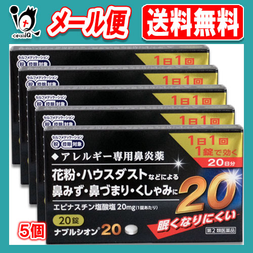 【第2類医薬品】★ナブルシオン20 20錠 ×5個セット【シオノケミカル】眠くなりにくいアレルギー専用鼻炎薬 花粉・ハウスダストなどによる鼻みず・鼻づまり・くしゃみに