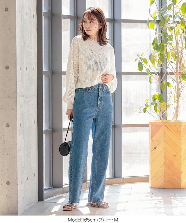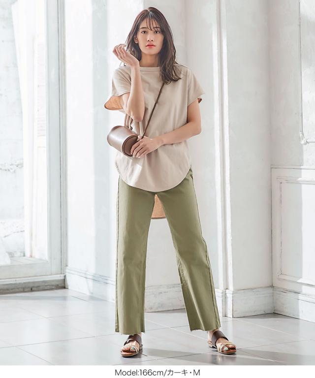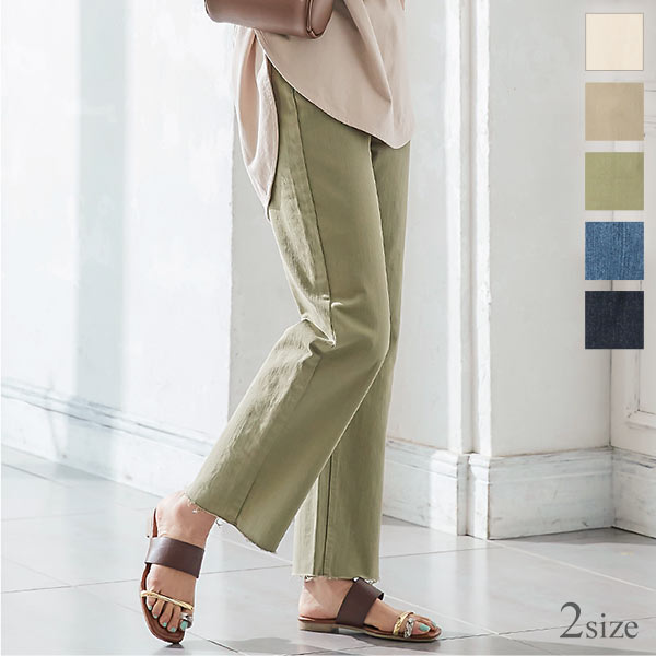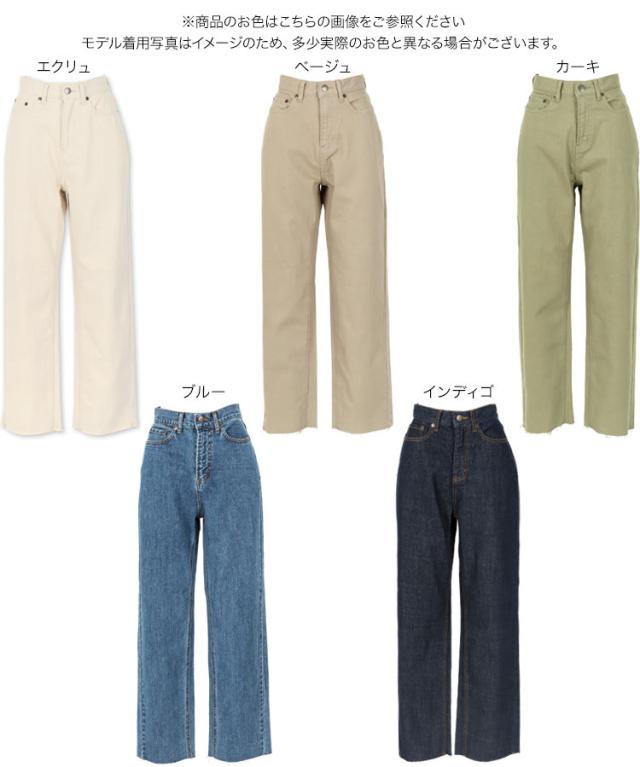春新作 デニムorツイルカットオフストレートワイドパンツ M3208 入荷済 OR プレゼント レディース 体型カバー パンツ ボトムス ロング丈 カットオフ デニム 無地 ワイド