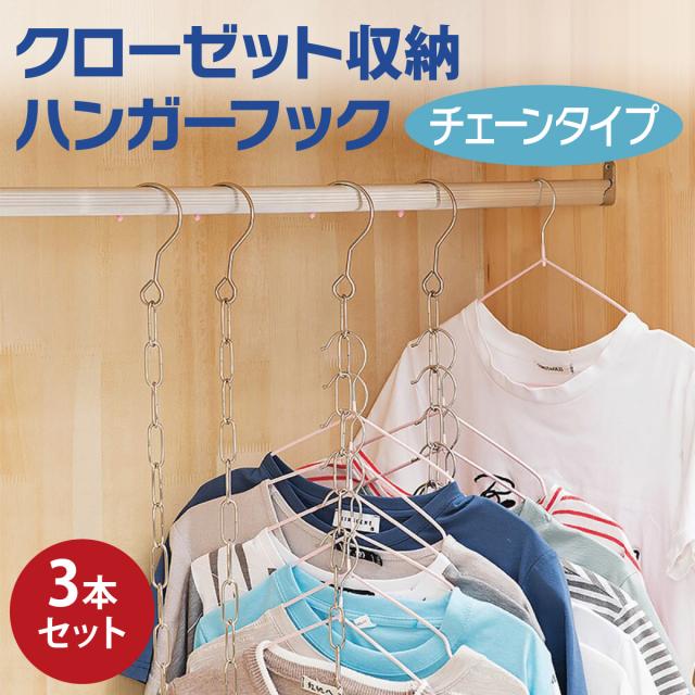 ハンガーフック チェーン 3本セット クローゼット収納 壁掛け 吊り下げ収納 ハンガー掛け ステンレス 便利グッズ chain-hook