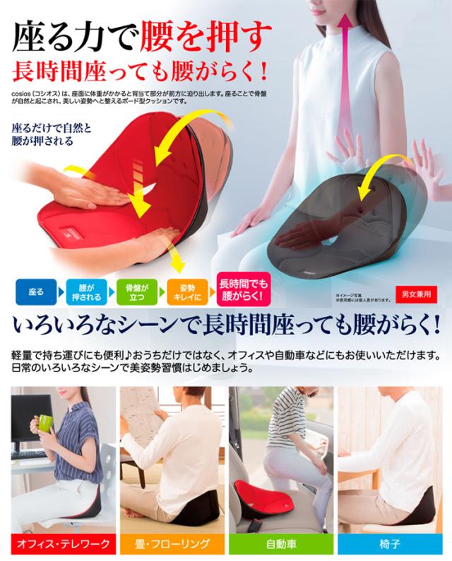 ボードクッション クッション 姿勢 美姿勢 腰痛 改善 オフィス テレワーク 畳 フローリング 自動車 椅子 男女兼用 レッド ブラック 猫背 軽量 腰楽 骨盤 背筋 cosios【328398】