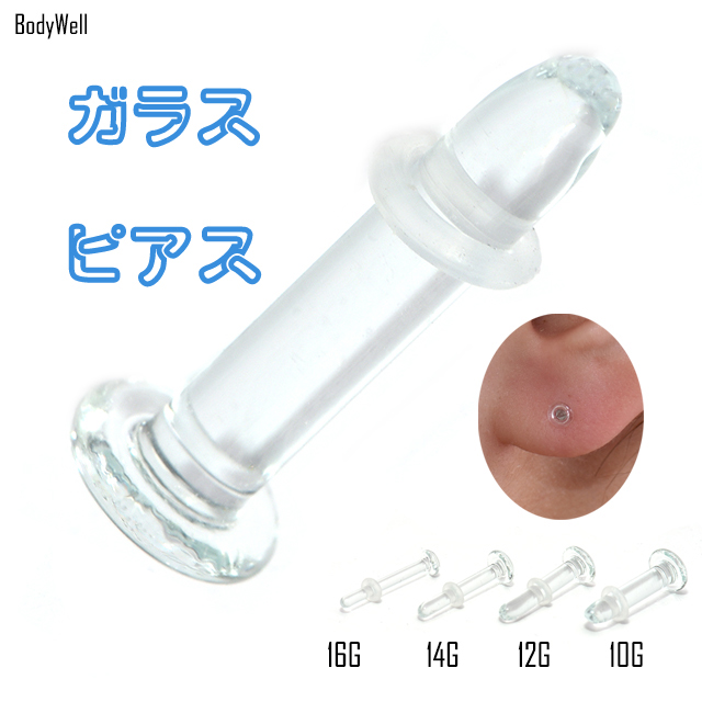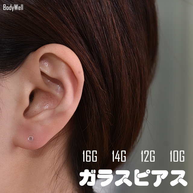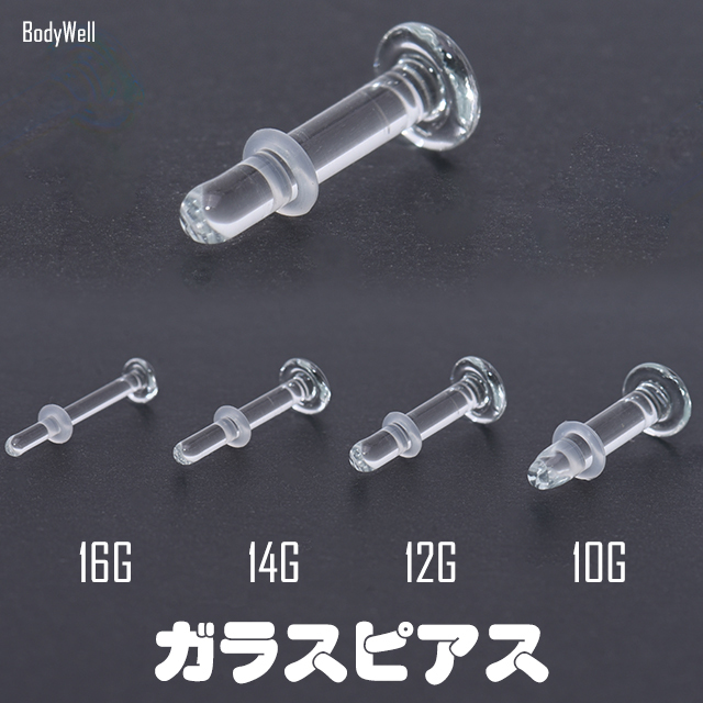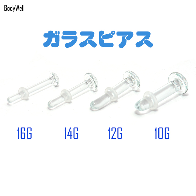 透明ピアス ガラスピアス 金属アレルギー対応 16G 14G 12G 10G 目立たない シークレットピアス 透ピ ボディピアス ロブ 軟骨ピアス ファーストピアス つけっぱなし