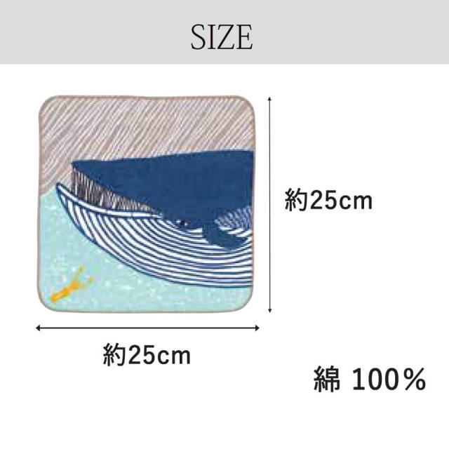 タオル 25cm ハンカチ ベビー マタニティー お弁当 プレゼント おしゃれ クジラ ブルー 送料無料 メール便2ポイント