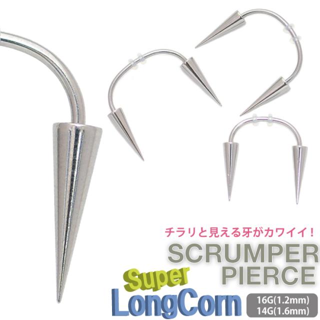【メール便対応】スクランパー スーパーロングコーン ボディピアス 16G(1.2mm) 14G(1.6mm) 16ゲージ 14ゲージ サージカルステンレス【牙 キバ ドラキュラ 吸血鬼 ロングスパイク ネジ式 超ロングコーン】 ┃