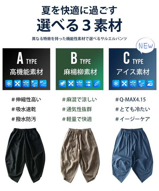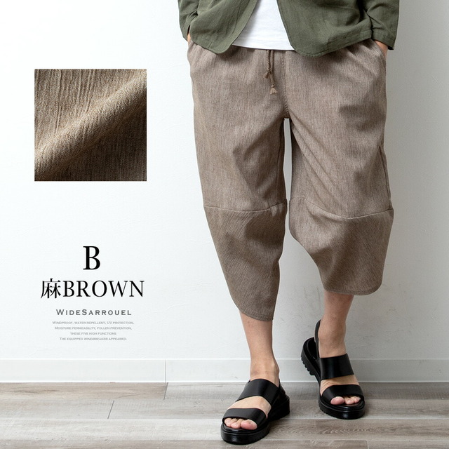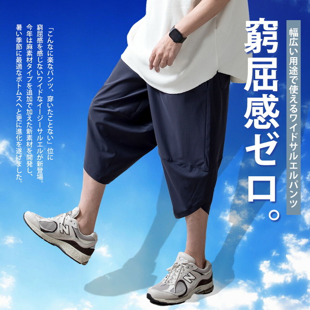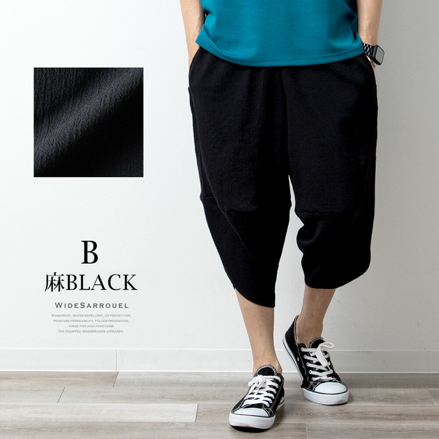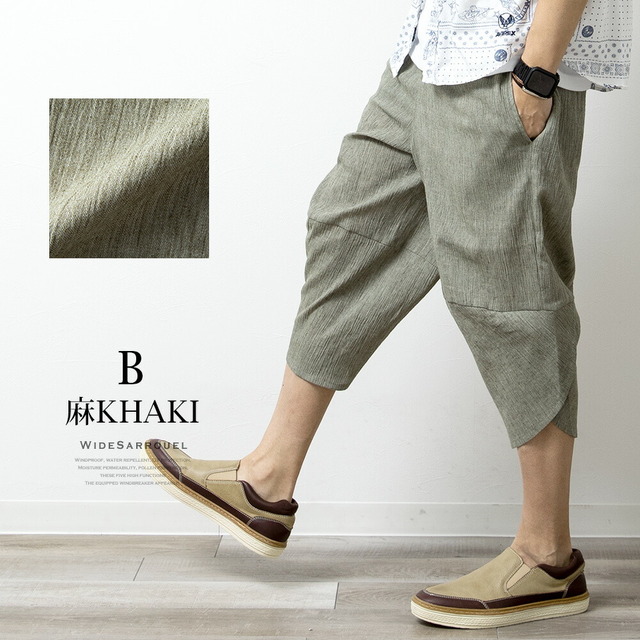 サルエルパンツ メンズ 春夏 ゆったり 涼しい 麻 パンツ 接触冷感 ストレッチ 7分丈 リラックス グレー 無地 ウエストゴム 麻ブラック 麻カーキ プレゼント アイスブラック